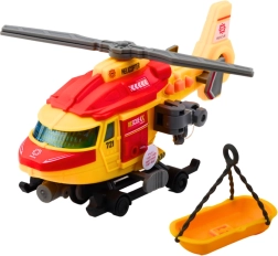 Redningssæt indeholder en båre, som kan hænges på en specialkrog med spil. Takket være dette kan barnet lege redningsmand og simulere spændende scener fra redningsmissioner. I pakken finder du 6 individuelle helikoptere, farven vælges tilfældigt.