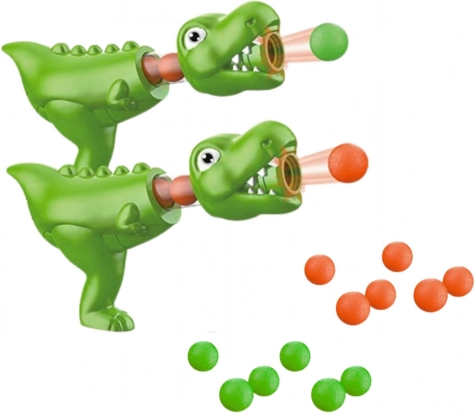 Pakken indeholder to affyrere i form af grønne dinosaurer, som fungerer med trykluft – det er nok at klemme, og bolden affyres energisk mod målet. Brug er intuitivt og sikkert, og kræver hverken batterier eller opladning. Affyrerne er lette, velegnede til børnehænder og giver mulighed for at lade op til 8 bløde kugler ad gangen, hvilket øger underholdningen uden hyppige afbrydelser.