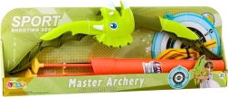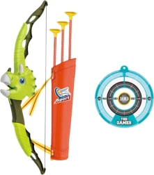 Buen med dinosaur-motiv byder ikke kun på et fantastisk udseende, der minder om en frygtindgydende dinosaur, men også lyseffekter, som aktiveres ved at trykke på knappen på den dinosaurusformede næse. Sættet indeholder desuden sikre pile med bløde spidser, et praktisk hylster med rem og en stilfuld målskive – alt, hvad du behøver til sjov målskydning.