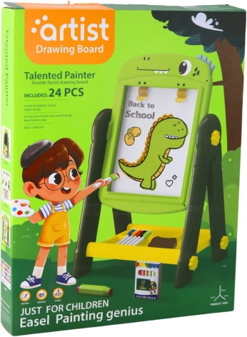 Dobbeltsidet magnetisk tegnetavle Dinosaur grøn med tilbehør