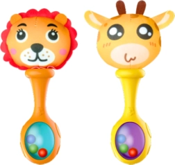 Sættet af rangler er designet med henblik på et voksende barns behov. Den har ergonomisk form tilpasset små hænder og en blød tekstiloverflade, der er behagelig at røre ved. Levende farver og dyremotiver som løve og giraf fanger straks barnets opmærksomhed og stimulerer dets sanser.