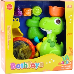 Mød den grønne dinosaur, som er det vigtigste element i dette sæt. Det ledsages af forskellige farverige tilbehør, såsom et net til at fange og et sæt flydende legetøj i forskellige former og teksturer, som børnene kan fange og hælde vand over.