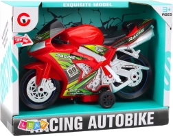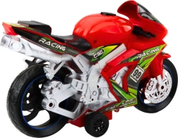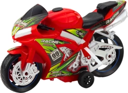 Den røde motorcykel er lavet af høj kvalitets plast, som er modstandsdygtig over for skader og er udstyret med solide brede hjul og stabil støtte, som sikrer sikker og komfortabel leg på forskellige overflader. Lys- og lydeffekter, der aktiveres ved at trykke på en knap, tilbyder realistiske motorlyd og lyseffekter, hvilket gør legen endnu mere fængslende.