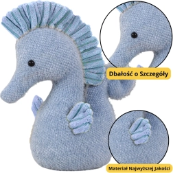 Den blå søhest imponerer med sit udseende, udført ned til de mindste detaljer. Den har sikre øjne, en omhyggeligt formet snude og en effektfuldt struktureret kam, som får den til at se realistisk og æstetisk ud.