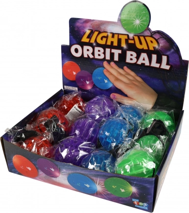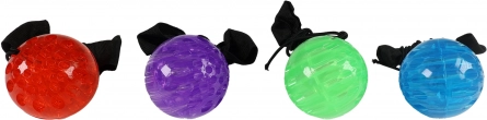 Farverig hoppebold, der lyser i farver ved kontakt med jorden. Takket være elastikken, som kan fastgøres om håndleddet, får du maksimal komfort under legen.