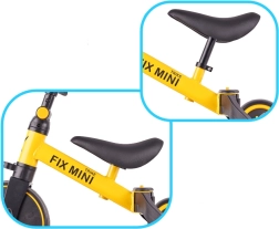 Trike Fix Mini vokser med barnet: på et øjeblik konverterer du den fra en løbecykel med tre hjul til en pedal-trehjulet og derefter til en træningstilstand med smallere baghjulsafstand for at øve balancen. Justerbart styr (41–50 cm) og saddel (31–38 cm) giver ergonomisk tilpasning til små ryttere fra 18 måneder til 4 år.