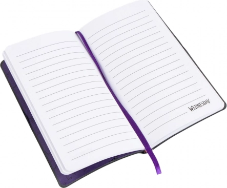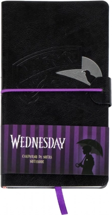 Elegant og stilfuld notesbog med Wednesday-motiv, ideel til daglige notater. Perfekte mål og solid konstruktion.
