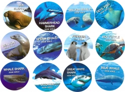 Figurerne inkluderer forskellige arter som haj, delfin eller skildpadde.