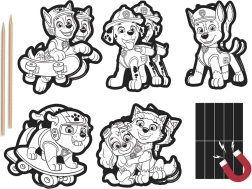 Gør børneværelset eller køleskabet ekstra livligt! Dette kreative sæt med Paw Patrol-motiver lader børn skrabe den sorte overflade væk og afsløre de klare farver nedenunder for at skabe unikke magneter. Hvert billede kan nemt laves til en magnet, der kan sættes på køleskab, tavle eller andre metaloverflader.