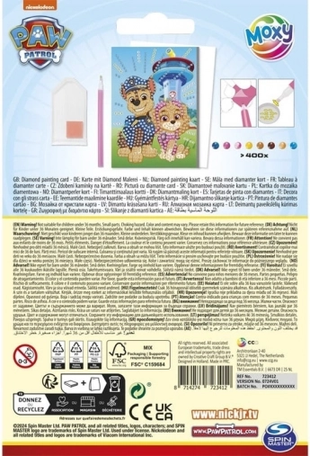 Kreativt sæt diamantmaling PAW PATROL 18 × 12,5 cm med mere end 400 sten, pen og kuvert. Større diamanter for nem skabelse for børn.