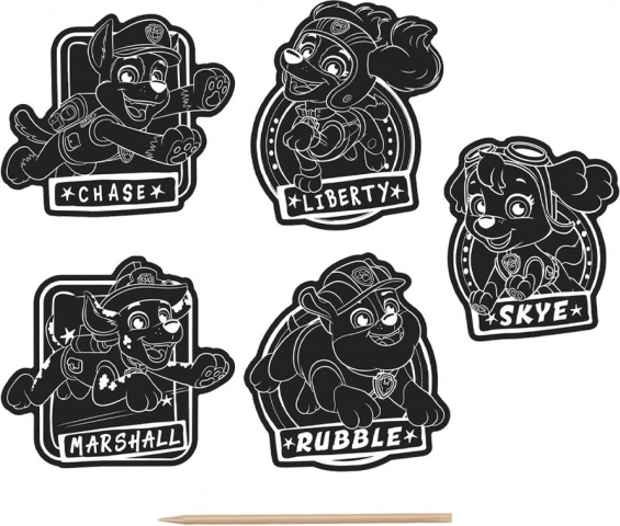 Lav din egen samling af klistermærker med motiver fra PAW PATROL. Skrab forsigtigt det sorte lag af, og afslør gradvist de levende farver og detaljer i de enkelte figurer. De færdige motiver er selvklæbende, så du kan bruge dem med det samme til at dekorere skoleudstyr, gaver eller små kort.