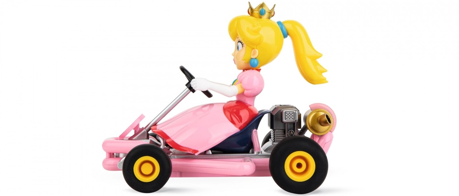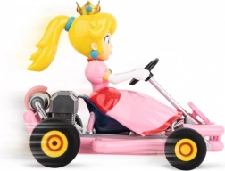 Nyd pink racer-eventyr med den fjernstyrede Mario Kart-bil fra Carrera RC i skala 1:18. Prinsesse Peach suser afsted i sin nye gokart, klar til enhver racerbane, med en topfart på 9 km/t og en længde på 21 cm.
