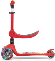 Dette løbehjul kombinerer ideelt sjov og funktionalitet og understøtter fysisk udvikling og koordination. Det har to siliciumhjul med lys foran, som sikrer stabilitet og balance. Skridsikkert dæk og baghjulsbremse øger sikkerheden under kørsel.