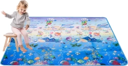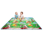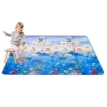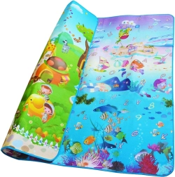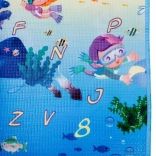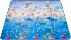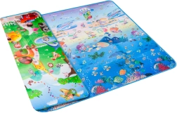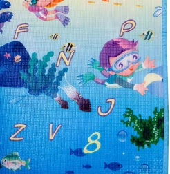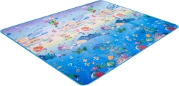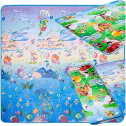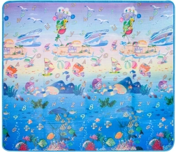 Dobbeltsiddet skumlegemåtte til børn tilbyder et blødt og sikkert sted til leg og læring. Den ene side viser havverden med bogstaver og tal, den anden en munter zoo. Måtten isolerer mod kulde, dæmper fald og er nem at rengøre – tør blot af med en fugtig klud.