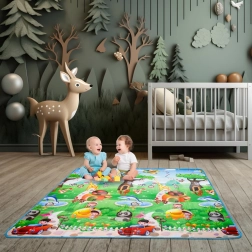 Denne foldbare måtte af robust EPE-skum er ideel som tæppe til børneværelset og legeområdet. Takket være det dobbeltsidede print kombinerer den sjov og læring – børn øver bogstaver, tal og dyr under legen.