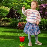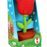Det farverige rosedesign med en praktisk potte ligger godt i små børnehænder og står stabilt både ude og inde.