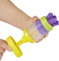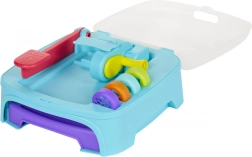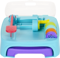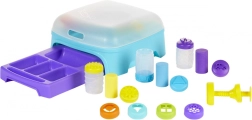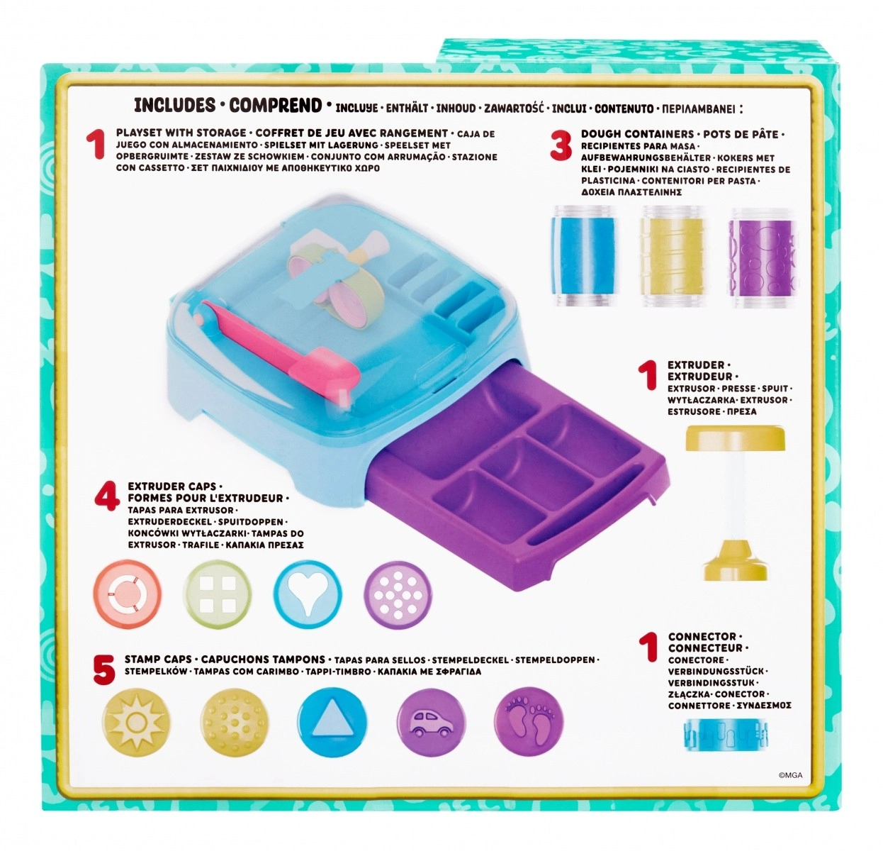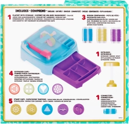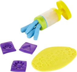 Hver dåse med masse er klar til sjov med stempler og andet tilbehør. I pakken finder du Dough Studio legesæt med 3 tuber modelleringsmasse, 5 låg med sjove stempler, 1 påsats med mønstre til udpresning og 4 dyser til at skabe flere former af din masse.
