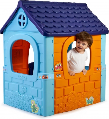 Bluey-huset bringer børnenes yndlingsfigurer direkte ud i haven. Takket være det rummelige interiør, brede vinduer og den fungerende dør med brevåbning tilbyder det realistiske elementer til kreativ og interaktiv leg. Holdbare plastpaneler med dekorationer og klistermærker sikrer lang levetid og nem vedligeholdelse.
