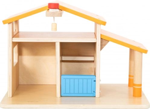 - Træstald til opbevaring af landbrugsredskaber og dyr