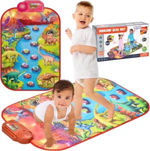 Musikmåtten er farverig og har dinosaurmotiver. Børn kan glæde sig til klavertoner og 7 forskellige andre lyde, inklusive dinosaurlyde.
