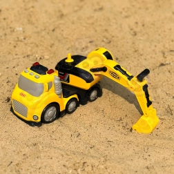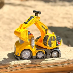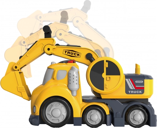 Armen med skovl kan hæves og sænkes, så det er nemt at samle sand eller små legetøj op og tippe dem af. Ideel til leg på byggepladsen.
