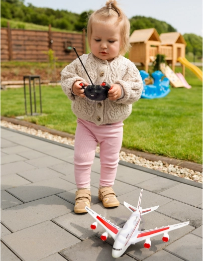 Modellen er beregnet til kørsel på gulv eller fortov – børn kan øve taxi, drejning og standsning, skabe deres eget “lufthavnsmiljø” og scenarier for lufttrafik. Fjernbetjeningen er nem at bruge og fremmer udvikling af motorik og fantasi.