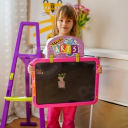 Let og stabil konstruktion med hylde til tilbehør holder alt inden for rækkevidde. Tavlen er velegnet fra 3 år og hjælper med at udvikle kreativitet, hånd-øje-koordination og samarbejde ved fælles skaben. Den fluorescerende funktion drives af AAA-batterier.