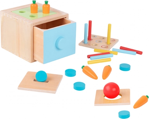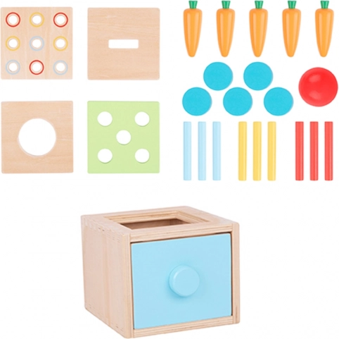 Fungerer efter princippet om at putte objekter i de rigtige huller. En enkel og samtidig lærerig leg, hvor børn oplever glæde og udfordringer. Sættet indeholder fire sværhedsgrader: