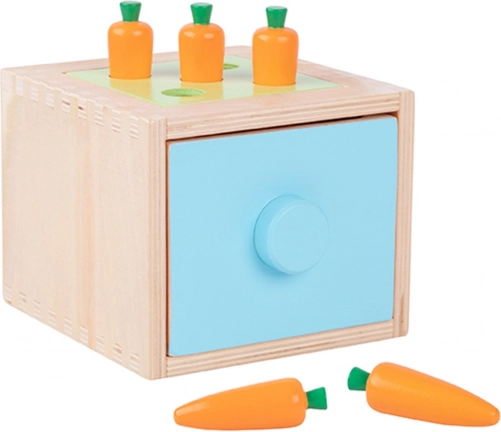 - - Indeholder 26 dele: skuffe, 4 sorteringsindsatser, 1 rød bold, 5 mønter, 5 gulerødder, 9 pinde i tre farver
