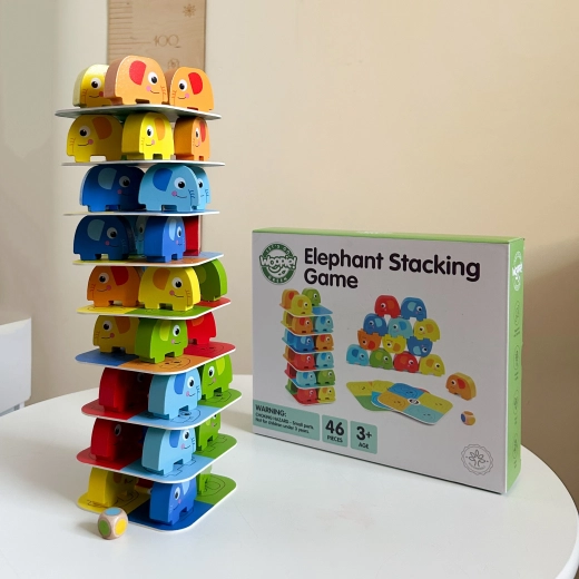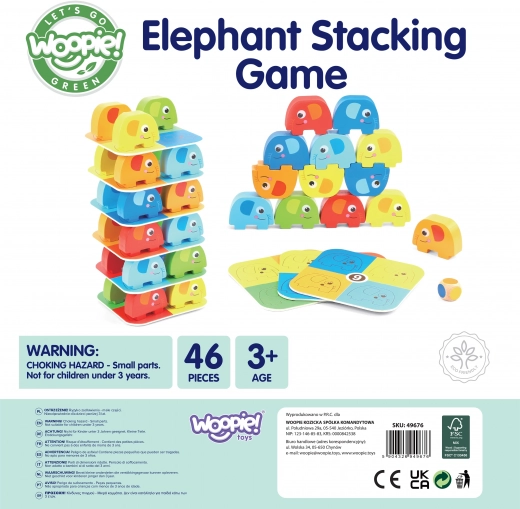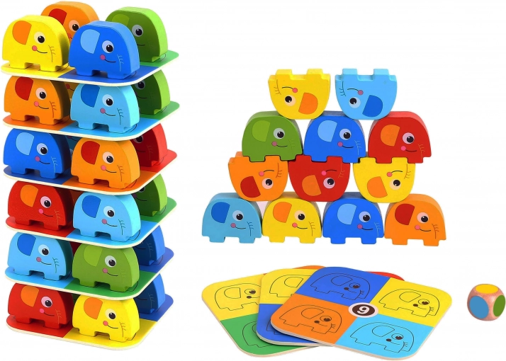 Oplev sjov og eventyr med spillet Elefant på elefant fra Woopie. Spillet indeholder 46 dele, inklusive farvede klodser og spillekort. Det er ideelt til hyggelige stunder med familien. Livlige farver og søde former fanger opmærksomheden og tilbyder to fascinerende spilvarianter – som stable-spil eller som et alternativ til Jenga.