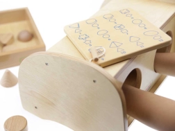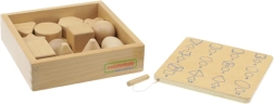 Det anbefales at bruge sættet sammen med Gæt med Berøring-boksen (ME04055). Der findes også en træbakke til opbevaring af legetøjet.