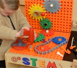 Et sæt farvede tandhjul og hjul, der muliggør konstruktion af komplekse mekanismer. Leg med Masterkidz STEM-skruer forbedrer børns motorik, logisk tænkning og kreativitet.