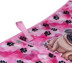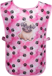 Leder du efter pålidelig tøjbeskyttelse til små skabere? Børneforklædet med poteprint og en nuttet mops er ideelt til billedkunst, håndværk, madlavning og kreative aktiviteter derhjemme. Den aftørbare, glatte overflade er nem at holde ren – tør blot af med en fugtig klud, så er det som nyt.