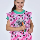 Forklædet har børnestørrelse og justerbar binding for behagelig brug og pålidelig dækning af den forreste del af tøjet.