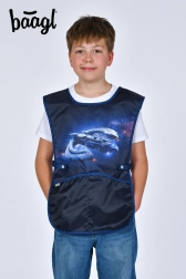 Leder du efter pålidelig beskyttelse af tøjet under kreativt arbejde? Baagl børneforklæde med det attraktive motiv Rumskib passer børn rigtig godt og modstår snavs ved maling, limning og modellering. Den aftørbare overflade er let at vedligeholde, og de to frontlommer rummer pensler, farveblyanter og servietter.