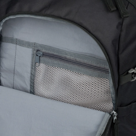 Den praktiske udrustning omfatter integreret lomme til bærbar, brillelomme, indvendig organiser med karabinhage til nøgler samt rem til fastgørelse på kuffert. Det tidløse design i sort fremstår rent og moderne og passer til ældre elever, studerende og voksne.
