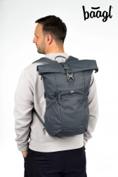 BAAGL Roll Grey er en moderne rolltop-rygsæk designet til elever i udskolingen, studerende og voksne. Takket være den lette konstruktion, ergonomiske rygpanel og støttende stropper bæres den komfortabelt selv ved fuld last. Det vandafvisende og hurtigtørrende materiale beskytter indholdet, mens de holdbare YKK-lynlåse sikrer lang levetid.