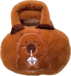 Fremstillet af blødt plysmateriale i en varm brun farve, hvilket giver den en hyggelig karakter. Forsiden er dekoreret med en brodering af en drikkende kapybara, et sødt motiv der tiltrækker opmærksomhed. For større sikkerhed af opbevarede genstande er tasken udstyret med en lynlås, der beskytter indholdet mod utilsigtet spild. Behageligt og blødt håndtag sikrer bekvemt at bære i hånden, og den høje kvalitet af materialerne sikrer langvarig holdbarhed og komfort.