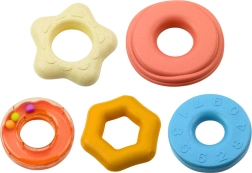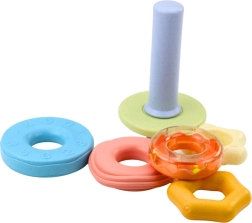 Hver ring har en anden tekstur, og en af dem er udstyret med en rangle. Det giver legetøjet forskellige lyd- og sanseimpulser, der fremmer udviklingen af perception og koncentration. Alle dele er lavet af sikre, holdbare materialer uden skadelige stoffer, der er helt egnede til de mindste brugere.
