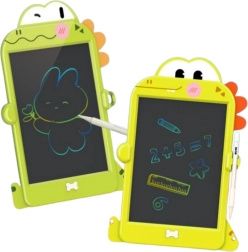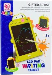 Denne plade i form af en sød dinosaur er et vidunderligt pædagogisk legetøj for børn, som udvikler deres kreativitet, fantasi og finmotorik. Takket være den genanvendelige LCD-skærm og den praktiske stylus kan børn lave tegninger, skrive deres første bogstaver og tal, øve skrivning, regning og håndskrevne noter – uden papir, farver eller blæk. Denne løsning er miljøvenlig og skånsom ikke kun for børn, men også for miljøet.