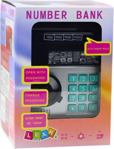 Sparebøssen tilbyder også muligheden for at skifte klassiske lydsignaler til stemmevejledning på engelsk, hvilket ikke blot beriger legen, men også hjælper barnet med at vænne sig til et fremmedsprog. Takket være den gennemtænkte konstruktion og moderne funktioner er dette pengeskab ikke kun et praktisk værktøj til opbevaring af penge, men også en fremragende gave, der udvikler sparsomme vaner allerede fra en tidlig alder.