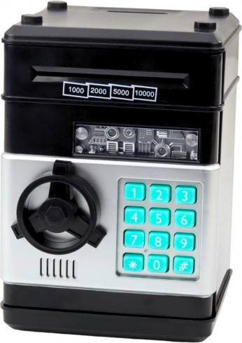 Sparebøssen er udstyret med en mekanisme til automatisk indsættelse af sedler samt en traditionel møntåbning placeret i den øverste del af enheden. Denne kombination gør det muligt at samle opsparing i forskellige former, hvilket gør produktet universelt og funktionelt. Adgang til indholdet i pengeskabet er mulig efter indtastning af en firecifret PIN-kode – standardindstillingen er 0000. Brugeren kan dog til enhver tid ændre adgangskoden, hvilket øger følelsen af privatliv og kontrol over egne opsparinger.