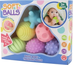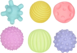 I pakken finder du 6 farverige, bløde kugler, hver med forskellig tekstur og form, inklusive overflader med knopper, riller, glatte og pindsvin-lignende elementer. Denne mangfoldighed sikrer forskellige taktile stimuli. Børn lærer ved leg at skelne mellem former, strukturer og farver, hvilket positivt bidrager til deres kognitive udvikling.