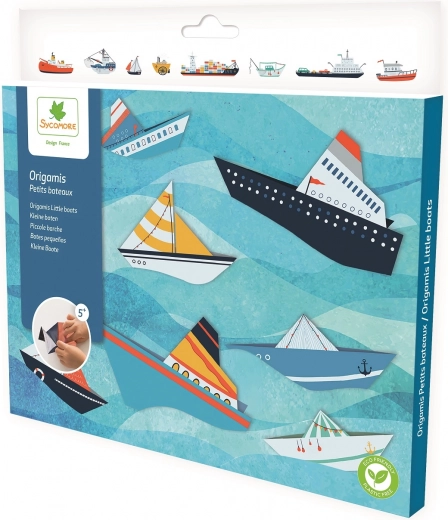 Kreativt sæt egnet til børn fra 5 år, som støtter udviklingen af finmotorik, tålmodighed og kreativitet gennem foldning af farverige papirbåde.