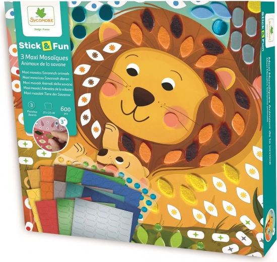 Dette kreative sæt giver børn mulighed for at lave tre smukke billeder af dyr ved hjælp af selvklæbende sten og glitrende mosaikstykker. Hver detalje giver deres værk et unikt skær, og når de er færdige, kan børnene stolt udstille deres kreationer ved hjælp af de medfølgende gennemsigtige ophæng.