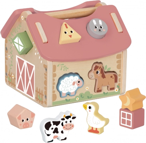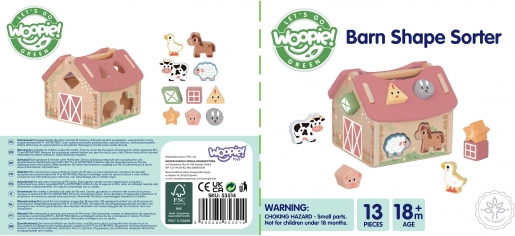 Træ bondegård-sorter WOOPIE GREEN i blide pastelfarver er et smart, pædagogisk legetøj til børn fra 18 måneder. Det lærer at genkende former og farver, introducerer dyr og udvikler finmotorik, øje–hånd-koordination og logisk tænkning. Takket være aftageligt tag og praktisk bærehåndtag er den let at rydde op og bære med – ideel til rejser og besøg hos bedsteforældre.