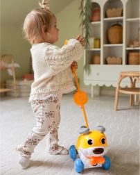 Brug den som et skubbelegetøj med lang stang eller som en trækhund i snor. Perfekt til at udvikle gang og koordination.