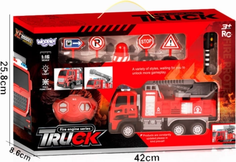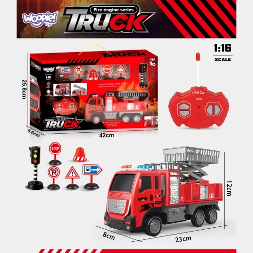 woopie fjernstyret brandbil med løfteplatform 1:16