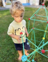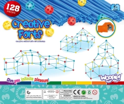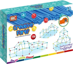 Sættet er ideelt til at udvikle dit barns kreative færdigheder. Det indeholder i alt 128 dele, som gør det muligt at bygge forskellige rumlige konstruktioner, herunder et telt.