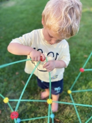 Konstruktionssættet fra WOOPIE vækker den lille bygmester i dit barn! Sættet indeholder 128 dele inklusive sugerør, forbindelsesrør og materiale til at dække konstruktionen. Det gør det muligt at skabe rumlige konstruktioner som et telt, som du kan dække med stof. Ideelt til kreativ leg derhjemme og udendørs.